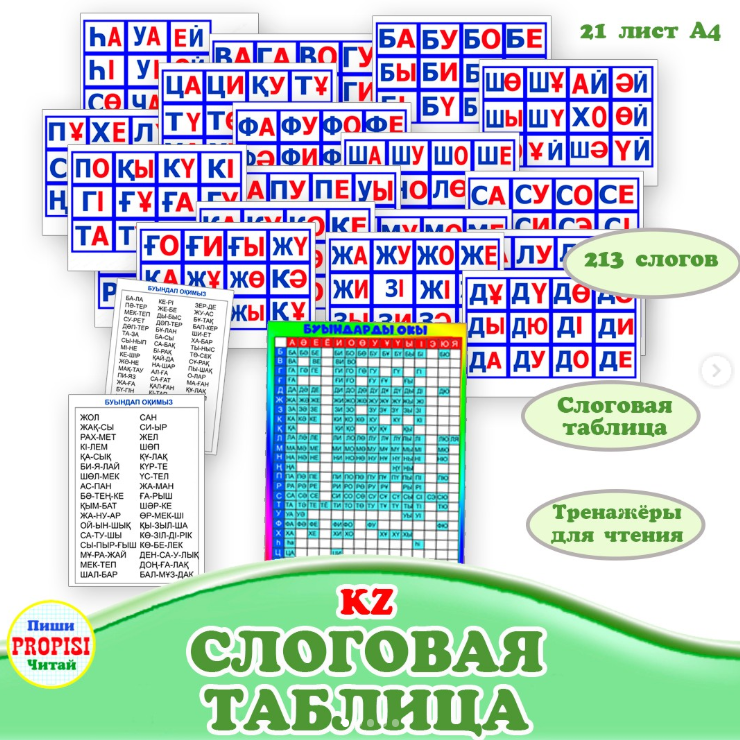 СЛОГОВАЯ ТАБЛИЦА КАЗАХСКИЙ ЯЗЫК