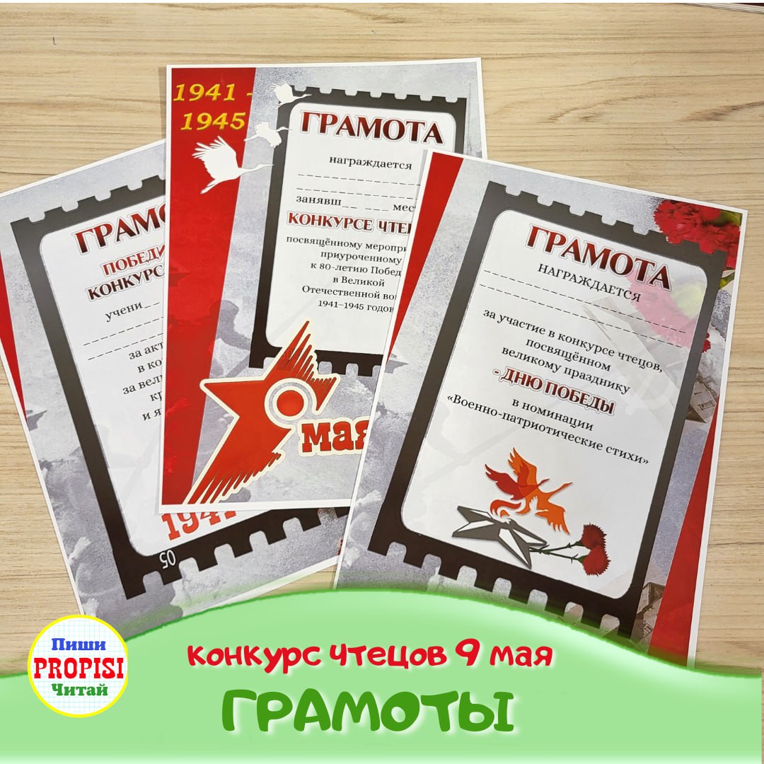 Набор грамот "Конкурс чтецов 9 мая". Каталожный номер – 654 🌷 Награждение участников конкурса чтецов, посвящённого Дню Победы. На выбор три...
