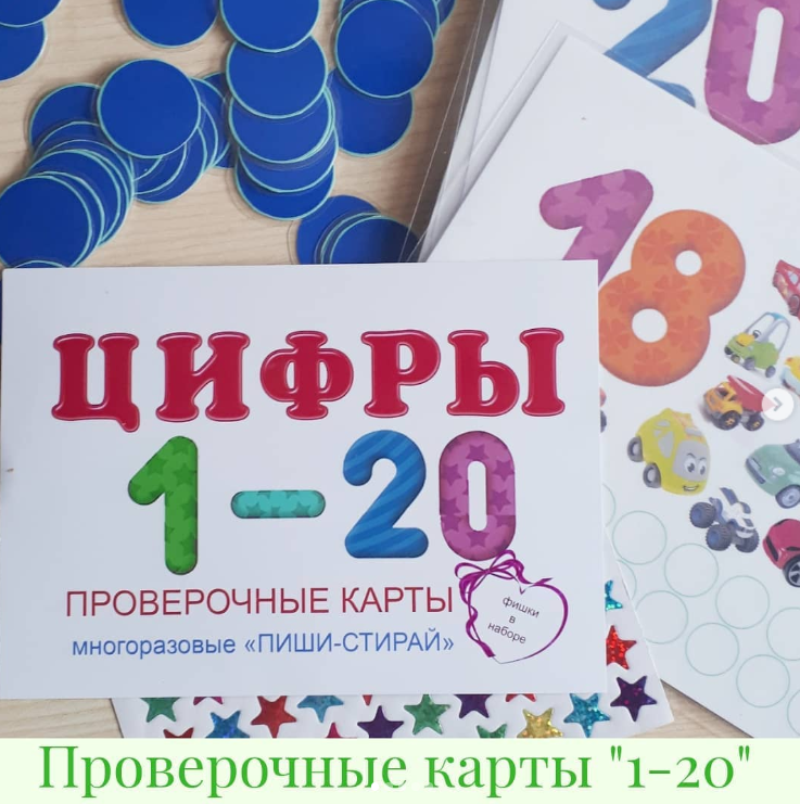 Набор "ЦИФРЫ 1-20" Каталожный номер- 7 Ребенок считает сколько на карточке картинок и закрашивает внизу круги. Закрашенные кругляшки легко с...
