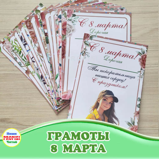 Набор "Грамоты 8 марта". 📚 Поздравляем наших девочек с праздником. В набор вошли 20 грамот, т.е. 20 разных номинаций. Но в вашем классе мож...