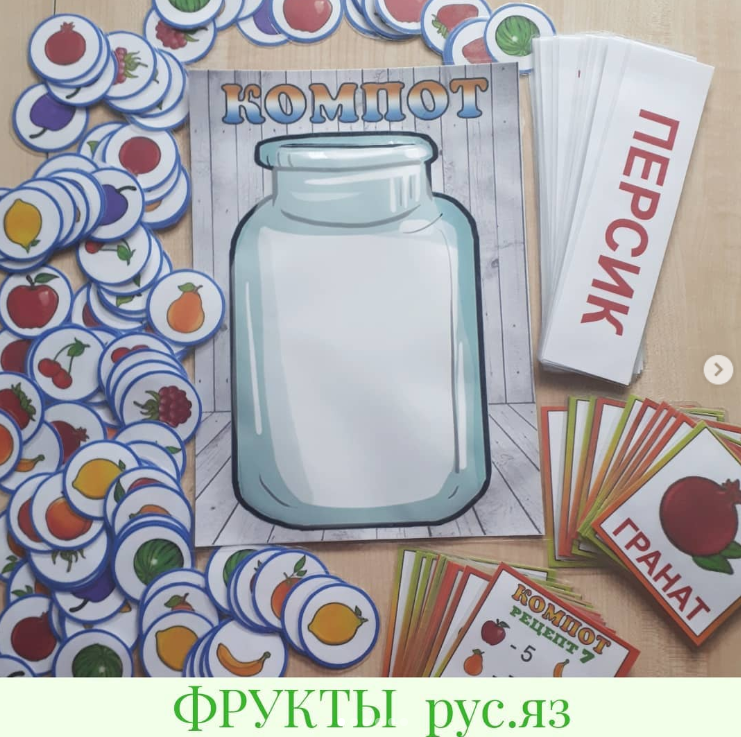 Набор "ФРУКТЫ" на русском языке Каталожный номер- 20 💡набор рассчитан на занятие с ребенком с 3х лет. В каждом наборе 12 рецептов компота....