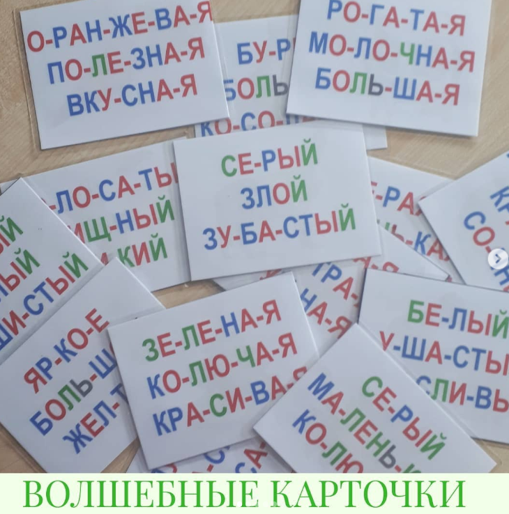 Набор "ВОЛШЕБНЫЕ КАРТОЧКИ" Каталожный номер 21 ♥️Суть карточек - угадать, что спрятано на картинке? С одной стороны написаны слова по слогам...
