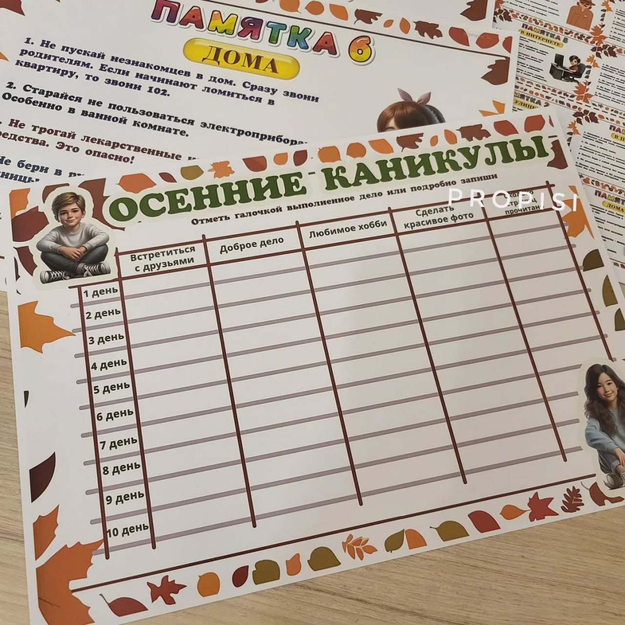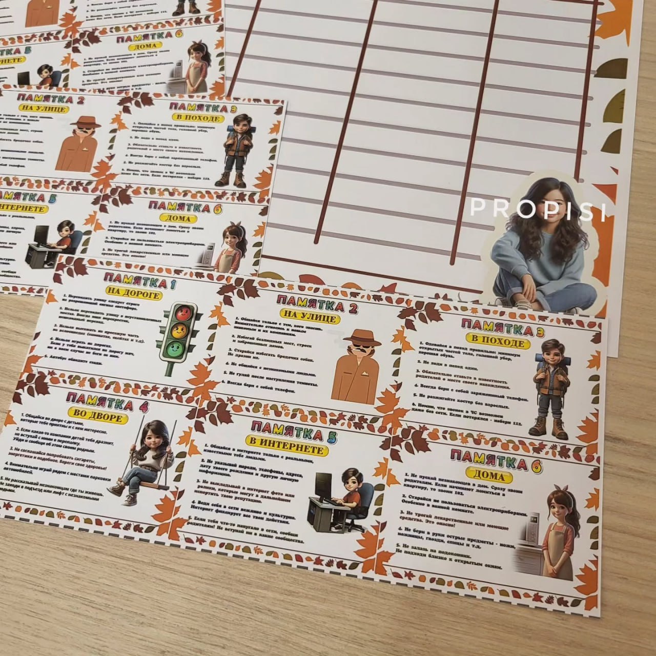 Уроки безопасности "Безопасносные каникулы Осень". Набор оформила в том же стиле, что летний, но с осенними нотками. Будем собирать коллекцию "Безопасные каникулы" Добавила "Список дел", пусть ребятам заполнят как можно точнее табличку- если что-то не сделали, то прочерк.... И добавила памятки в уменьшенном формате, один лист на 3 ученика....Можно вклеить в дневник или тетрадь по безопасности.